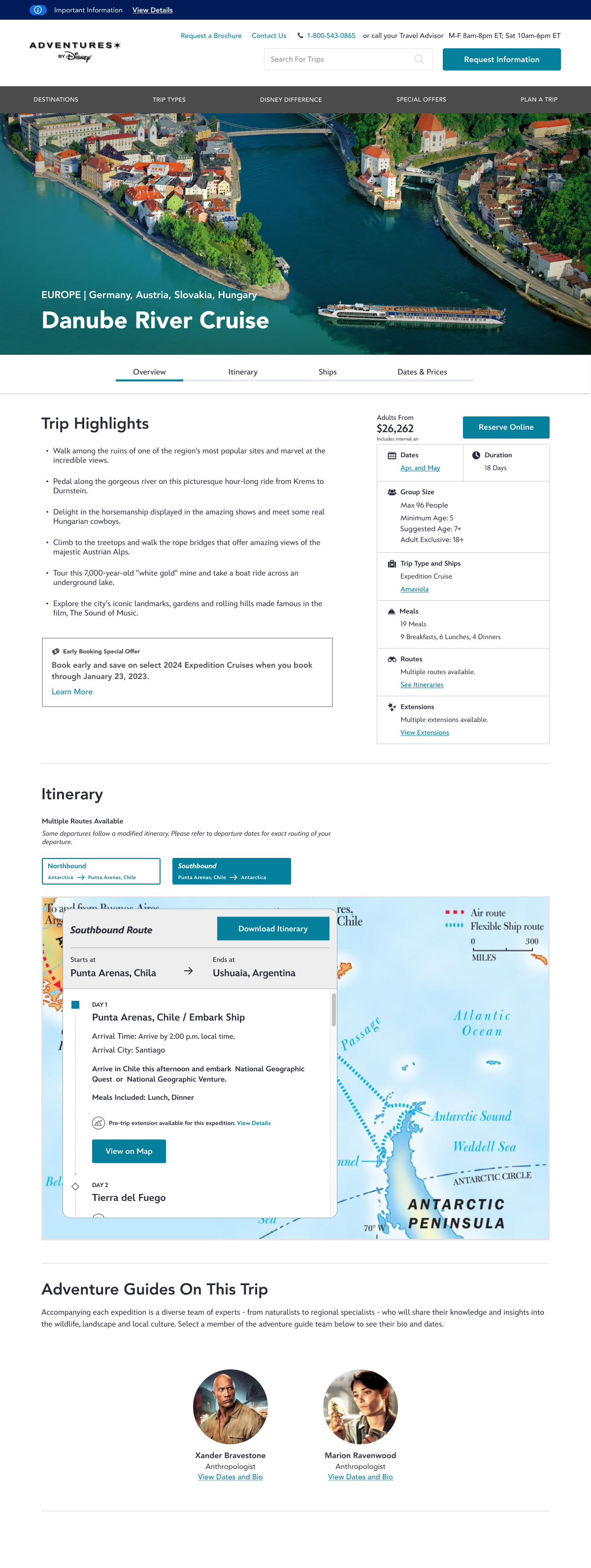 Disney was in the process of migrating brands to a single site management system for more consistent experiences, in addition to smoother management for site producers. Kicking off this multi-brand effort, the acquisition of National Geographic Expeditions allowed space for branding alignment with Adventures by Disney, while simultaneously converting both sites to AEM.