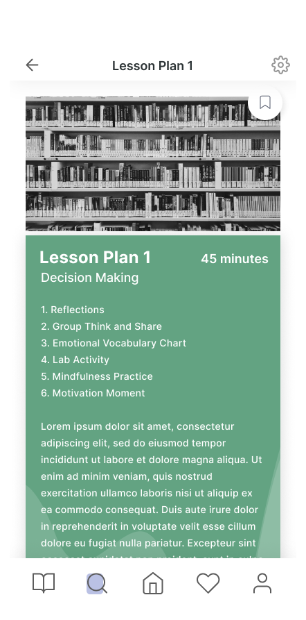 ETGE had two feature “must-haves” for Mindfulness Labs: (1) SEL lesson plan database where users could search through ETGE’s established lesson plans and (2) lesson plan customization, allowing users to break apart pre-made lesson plans into smaller activities they can then combine into their own plans.